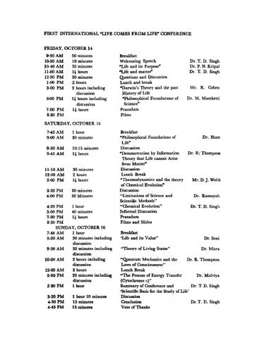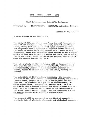 (1977). Life Comes from Life: First International Scientific Conference - Announcement & Schedule