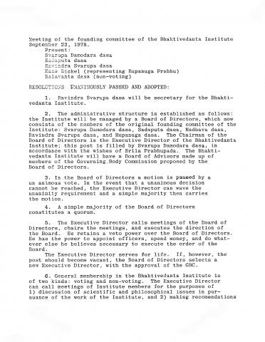 (1978). Bhaktivedanta Institute Founding Committee Resolutions