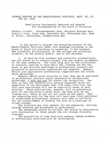 (1978). General Meeting of the Bhaktivedanta Institute, September 1978