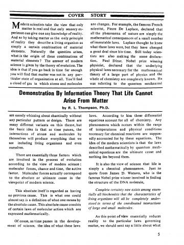 (1980). "Demonstration By Information Theory That Life Cannot Arise From Matter" (abridged)