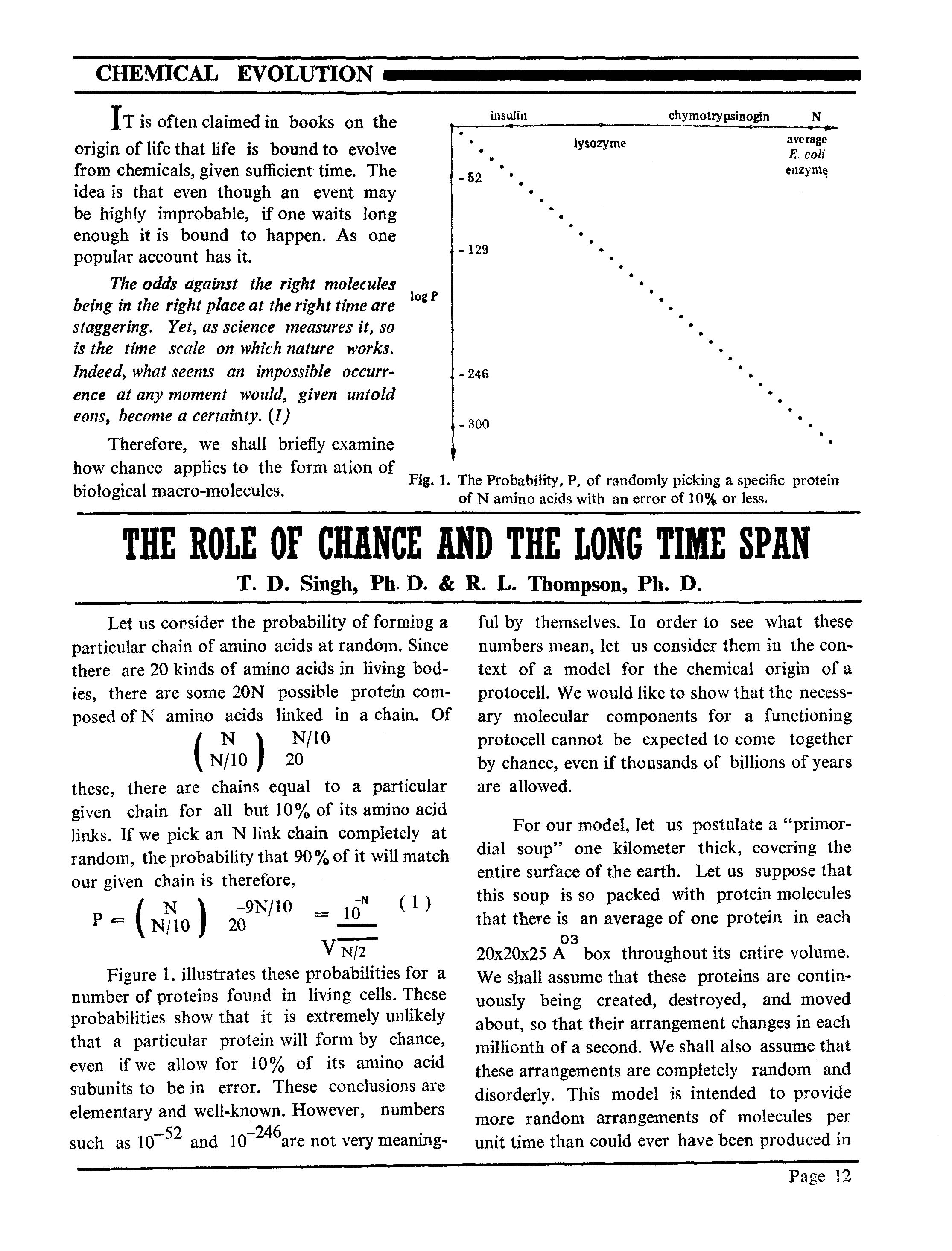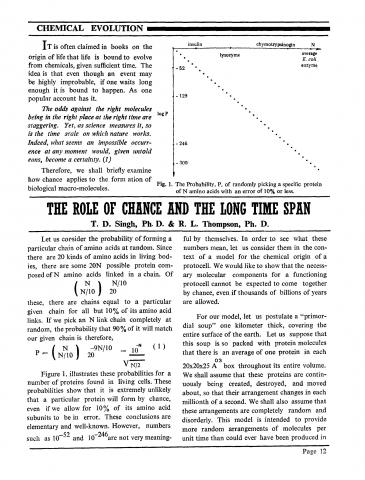 "It is often claimed in books on the origin of life that life is bound to evolve from chemicals, given sufficient time. The idea is that even though an event may be highly improbable, if one waits long enough it is bound to happen. . . . Therefore, we shall briefly examine how chance applies to the formation of biological macro-molecules."