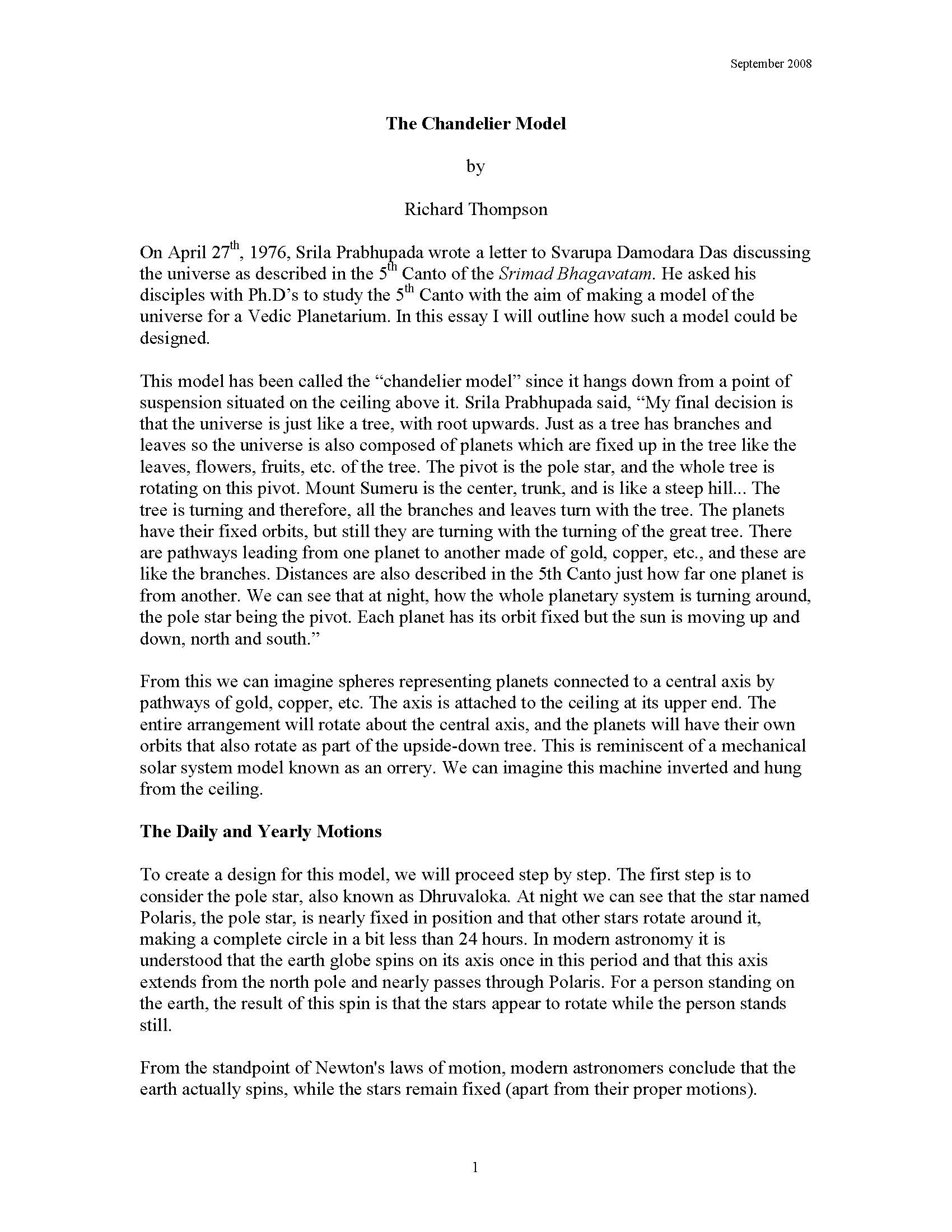 (2008). "The Chandelier Model," Bhaktivedanta Institute, Alachua, FL