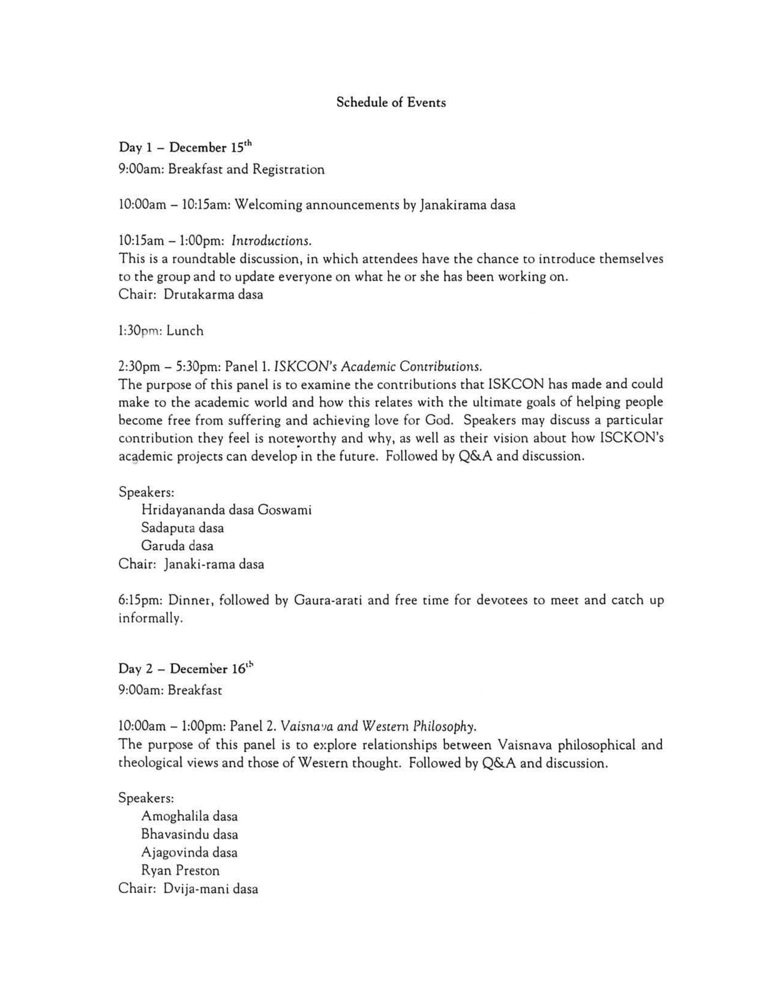 Featured panel speakers include Hridayanada dasa Goswami (Howard Resnick),