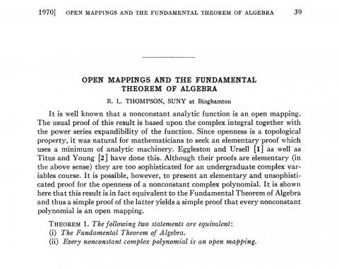 (1970). "Open mappings and the fundamental theorem of algebra." Mathematics Magazine 42(1), 39-40.