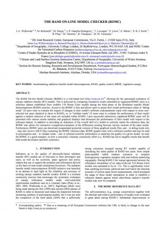 (2008). "The RAMI On-line Model Checker (ROMC): A web-based benchmarking facility for canopy reflectance models." Remote Sensing of Environment 112(3), 1144-1150.